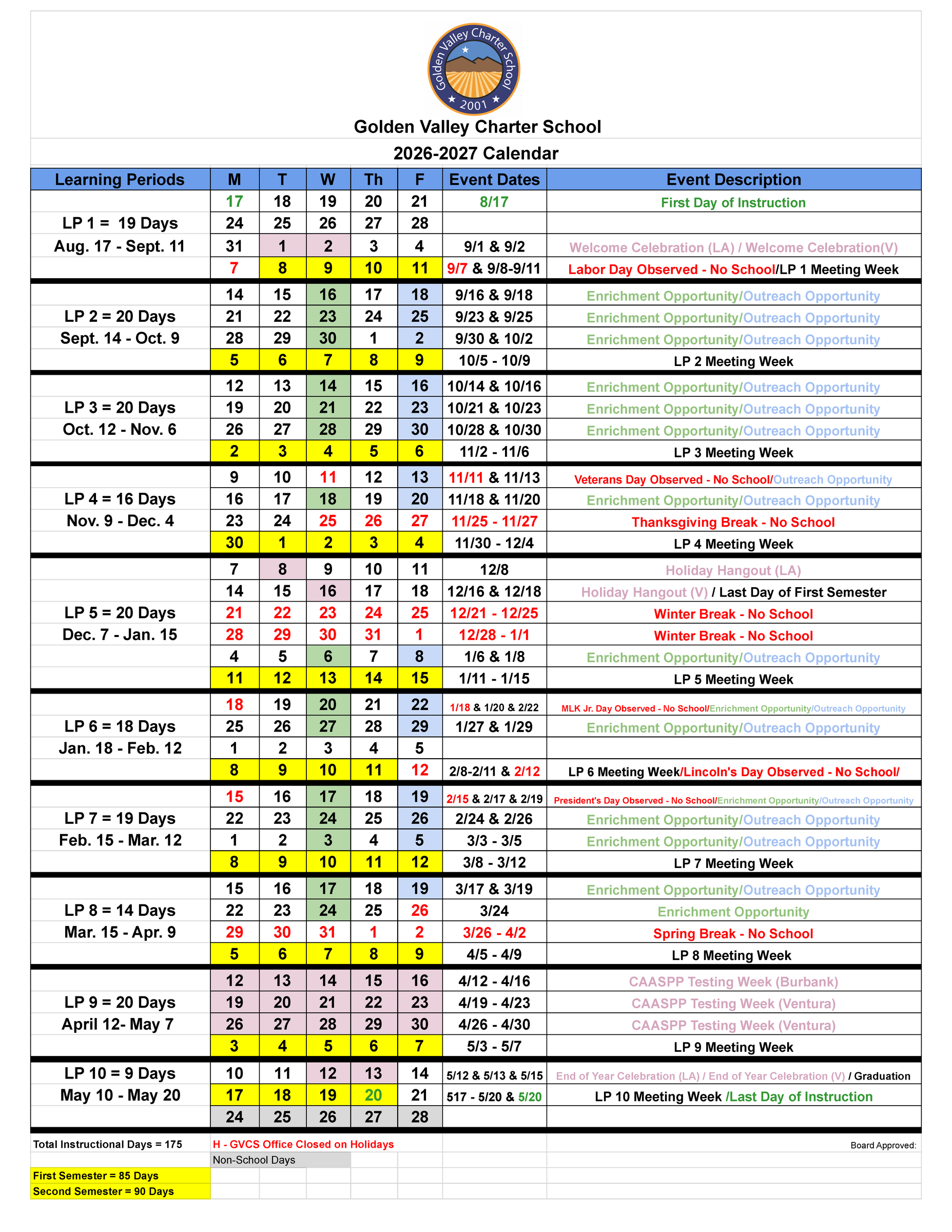 2026-2027 Detailed Calendar